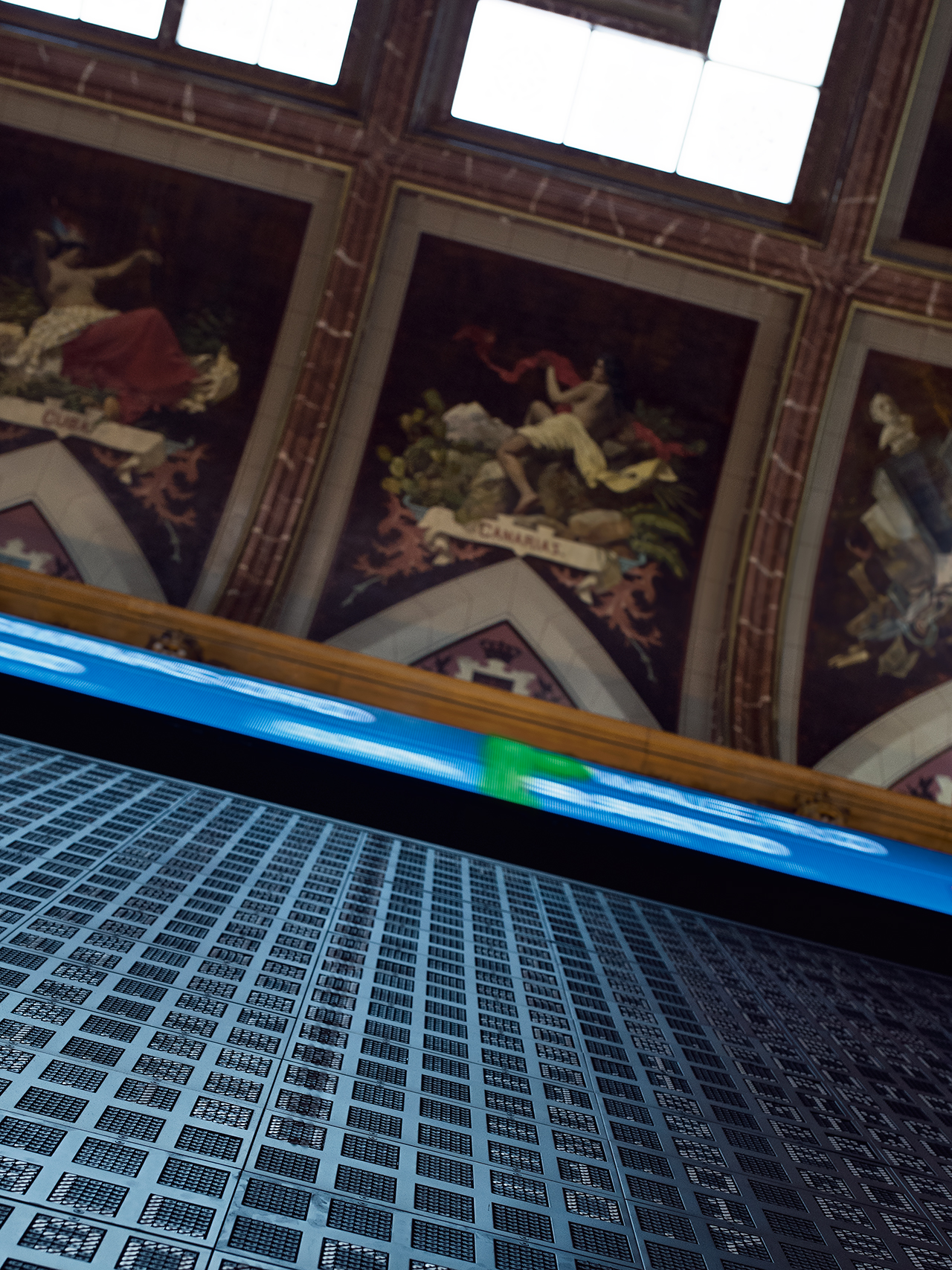 María Cristina de Habsburgo, la Reina Regente, inició a las 4 de la tarde del día 7 de mayo de 1893 su visita al nuevo edificio de la Bolsa de Madrid en la Plaza de la Lealtad. Iba acompañada de la Infanta Isabel y de un amplio séquito de financieros y miembros del Gobierno encabezado por el Ministro de Fomento - Alejandro Groizard y Gómez de la Serna-. Su periplo duró media hora, según crónicas de la época, lo suficiente para conocer algunas de las estancias más características de un edificio que pretendía ser un compendio de los mejores parqués de Europa. El acto costó 9.218,8 pesetas, según la puntillosa reseña de los periódicos, incluyendo 1.000 pesetas en flores, 1.828,5 pesetas para las alfombras del Salón y las escaleras, 131,5 pesetas para el café de los contratistas y 11,75 pesetas más para financiar el coche con el que se distribuyeron las invitaciones del acto. Concluída la visita de la Regente, los convocados se dirigieron a los salones del Palacio de Medinaceli a celebrar con un baile el feliz acontecimiento.