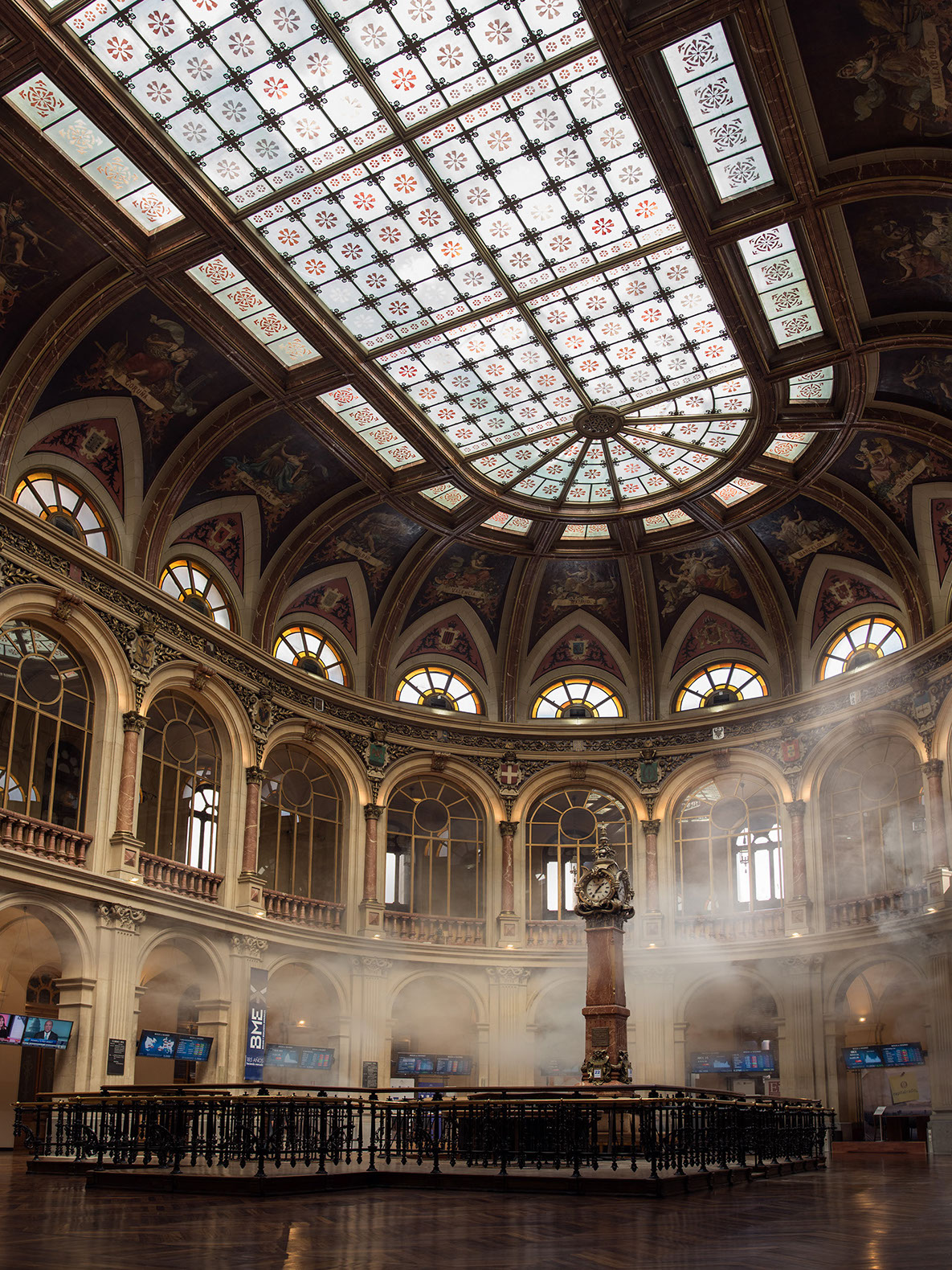 El edificio de la Bolsa en el número 1 de la Plaza de la Lealtad cumple 125 años de existencia y está muy vivo. Entre los emplazamientos de las Bolsas europeas surgidos a mediados del Siglo XIX -prácticamente una veintena de los edificios bursátiles de Europa se construyen durante la segunda mitad de ese siglo- es prácticamente el único de sus coetáneos que sigue cumpliendo la función de lugar de encuentro financiero para la que fue creado. Salvo Nueva York, Francfort o alguna plaza más en Latinoamérica, no quedan ya edificios singulares que continúen justificando su comienzo bursátil, por más que ahora cumpla fines de representación y referencia académica del siempre especial mundo financiero-bursátil.