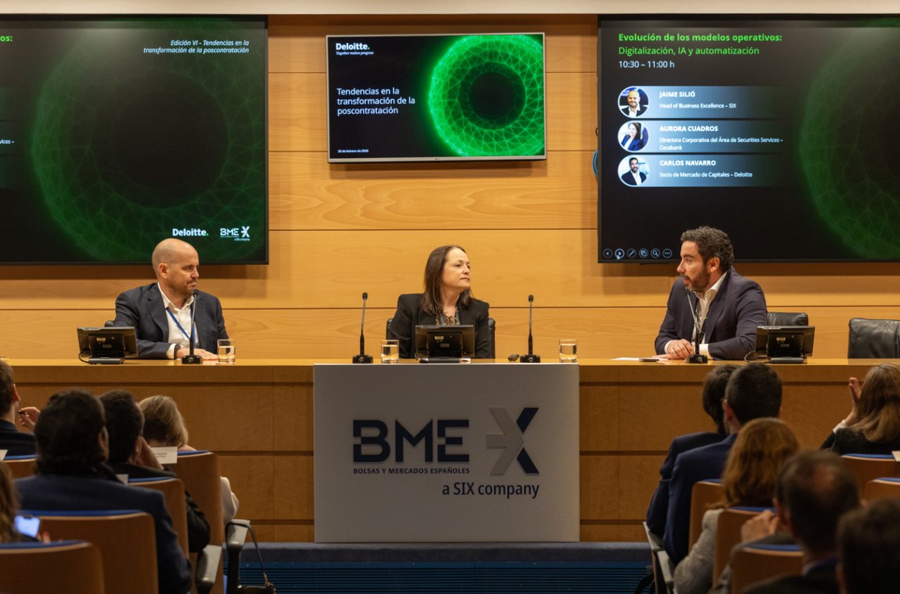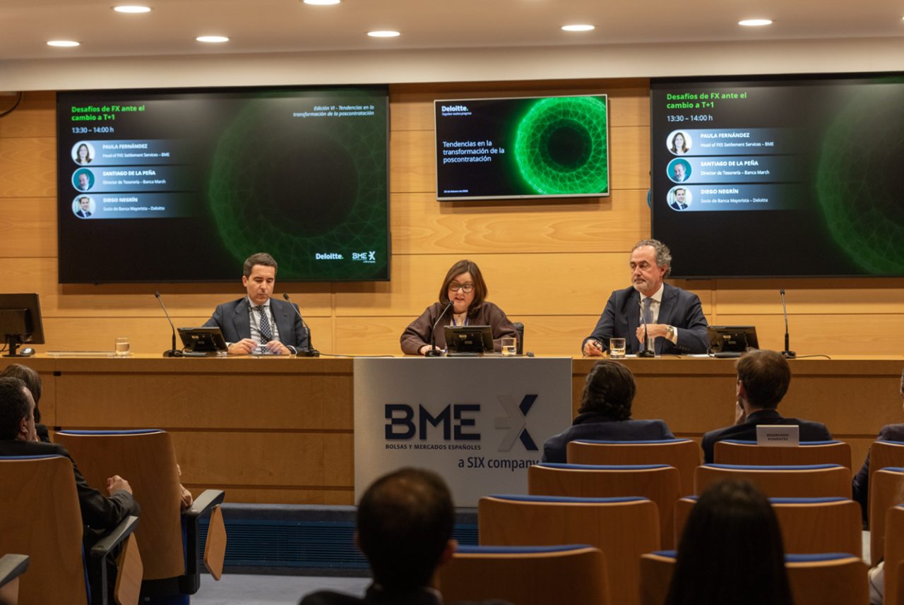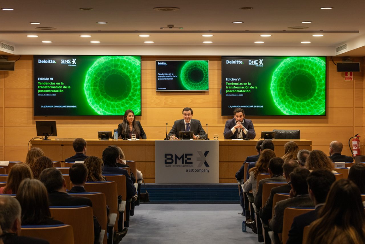 The sixth edition of the conference “Trends in Post‑Trade Transformation,” organized by Deloitte in collaboration with BME and held on 25 February at the Madrid Stock Exchange Palace, brought together professionals from across the financial ecosystem to examine key regulatory and technological developments, as well as the new opportunities arising from asset tokenization and the evolution of digital money in capital markets.